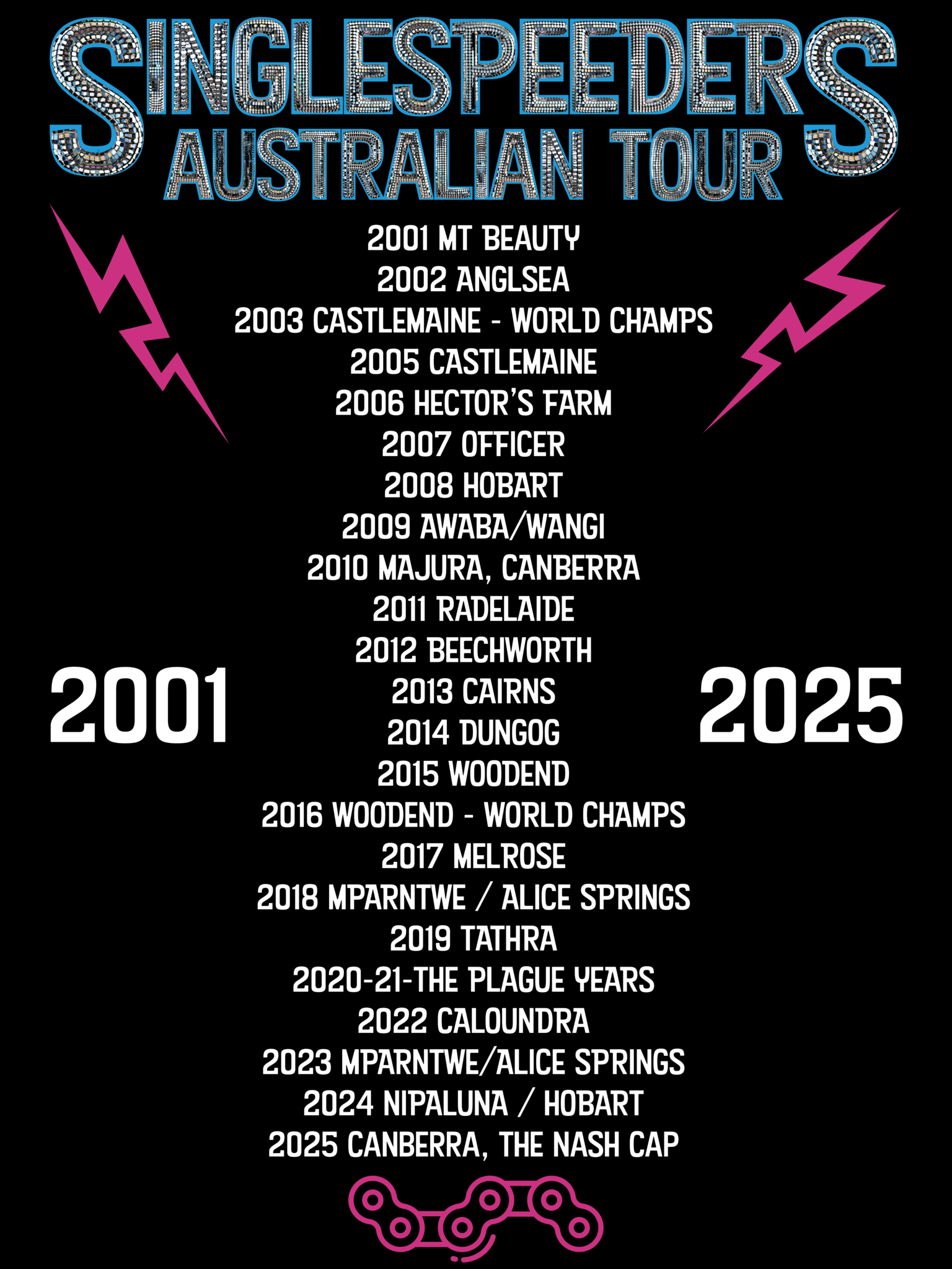 We have Magazine Babe and Australian Singlespeed Tour Tees available for sale or hire.